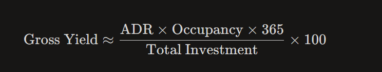 Your rental yield is driven by three variables: ADR (average daily rate), occupancy, and operating expenses.